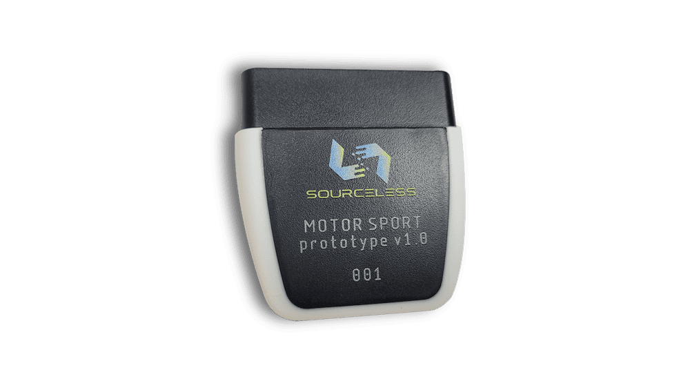 The SourceLess Motorsport Device (SL-MS1) introduces a blockchain-secured, decentralized diagnostic system, where each device functions as both a diagnostic interface and a node in the SourceLess blockchain network.